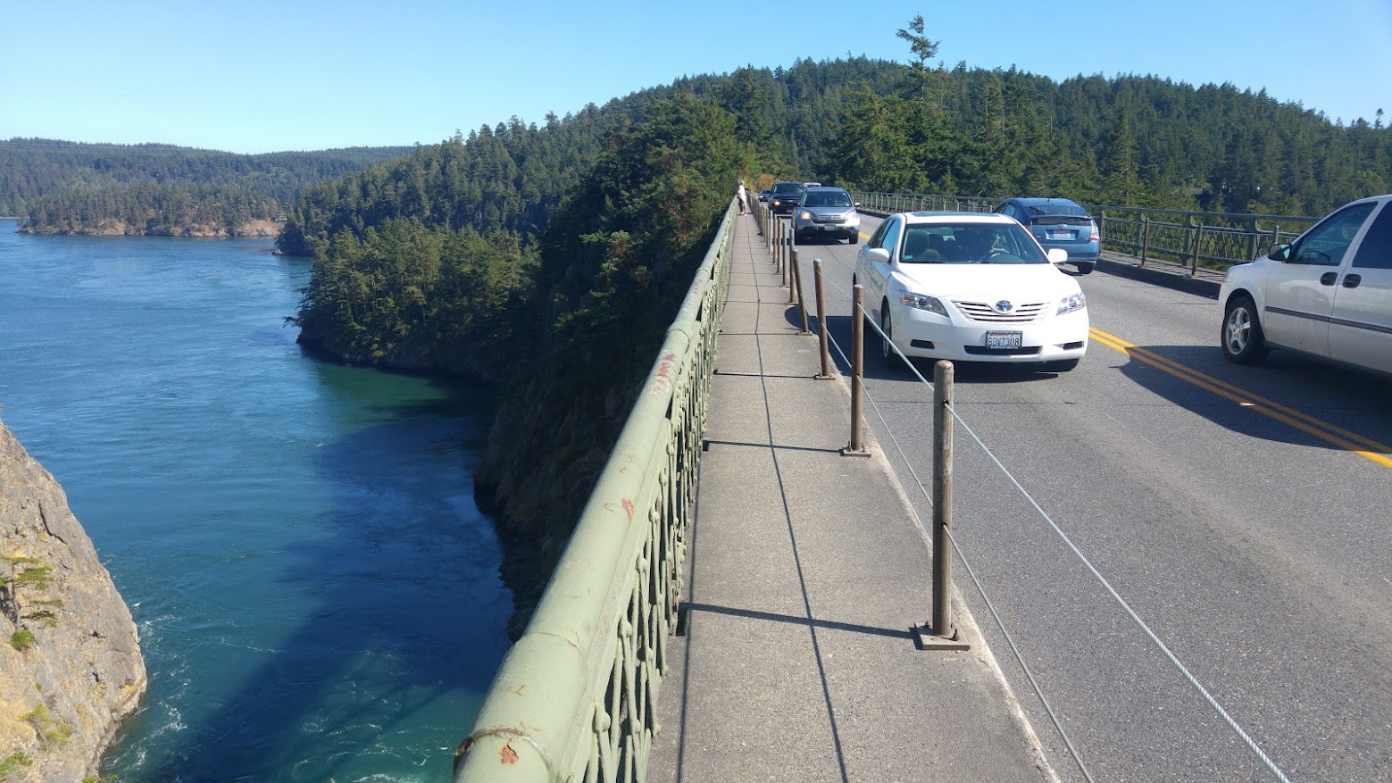 Aan de overkant vervolgden we onze weg over Rt 20 langs Coupeville en Oak Harbor in de richting van de brug over Deception Pass. Deze brug ligt in een State Park waar je eigenlijk niet mag stoppen om foto’s te maken, zonder een kaartje te kopen. We stopten toch even en maakten wat foto’s, waarna we verder reden naar Howards Corner, waar de weg naar het oosten afboog en vierbaans werd.