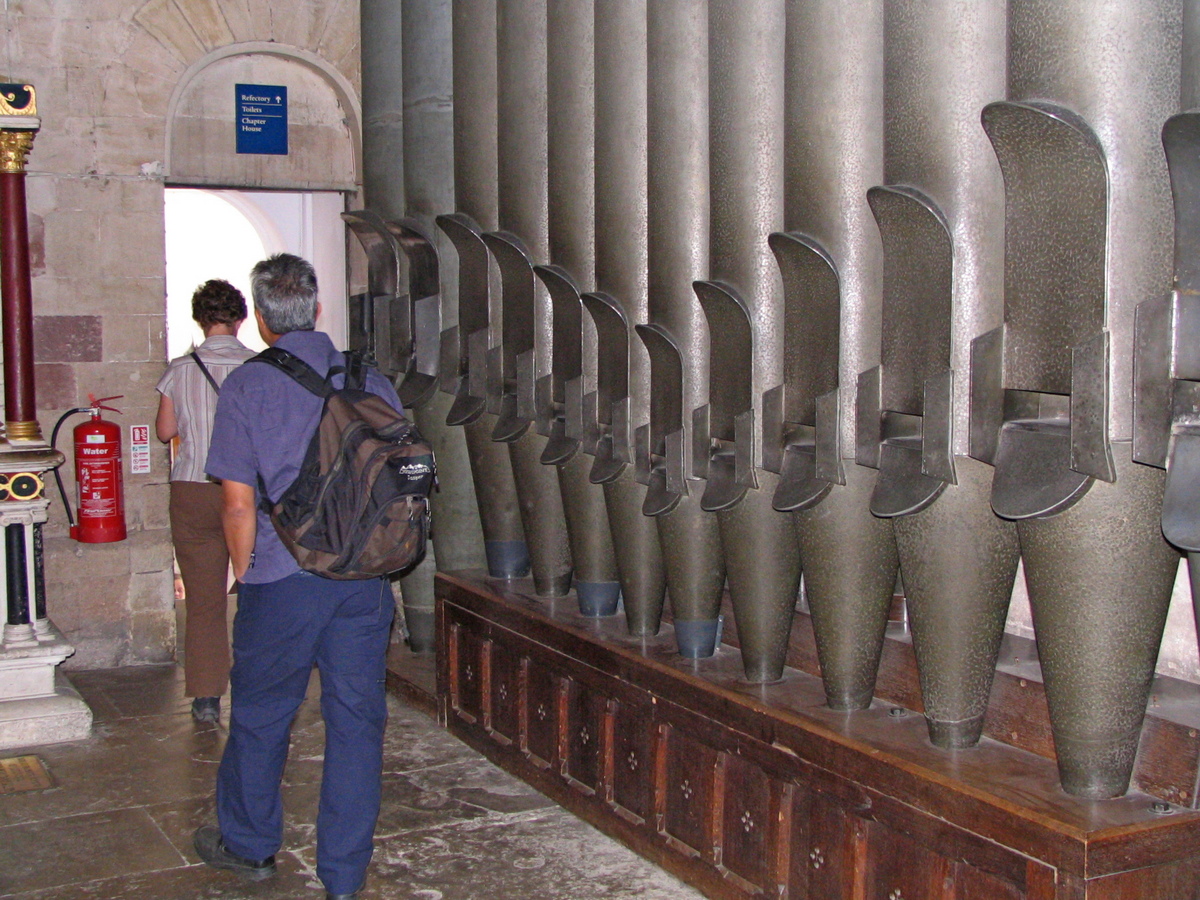 Ook dit is een typisch Engelse kathedraal, met prachtig beeldhouwwerk, een enorme ruimte, veel gedenkborden van allerlei personen aan de wand en opnieuw een orgel dat veel groter is dan het lijkt. Ook hier stonden de 32-voets pijpen gemoedereerd in een transept, gewoon op de vloer, waar mensen heen en weer liepen langs dit indrukwekkende pijpwerk. Het instrument behoeft binnen enkele jaren restauratie en zal dan ook uitgebreid worden om het mooier en completer te maken.