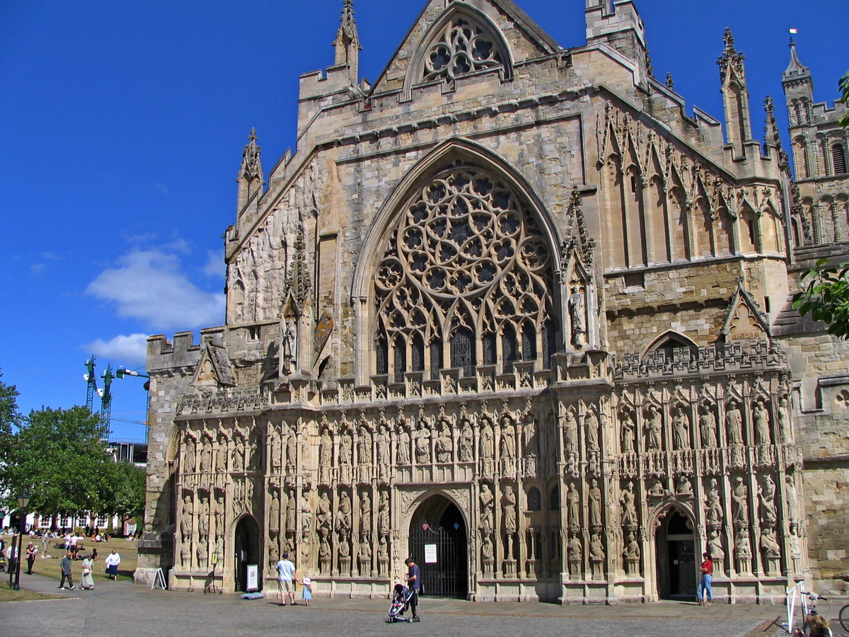 Het was een behoorlijke afstand naar Exeter, maar halverwege de middag bereikte ik deze grote stad. Volgens mijn reisgidsje wonen er bijna 90.000 mensen. Ook in deze stad stonden goede wegwijzers en zonder veel moeite vond ik de parkeergarage vlakbij het stadscentrum. Ik kocht een parkeerkaartje tot na 18.00 uur, omdat ik de Evensong wilde bijwonen en liep naar de kathedraal.