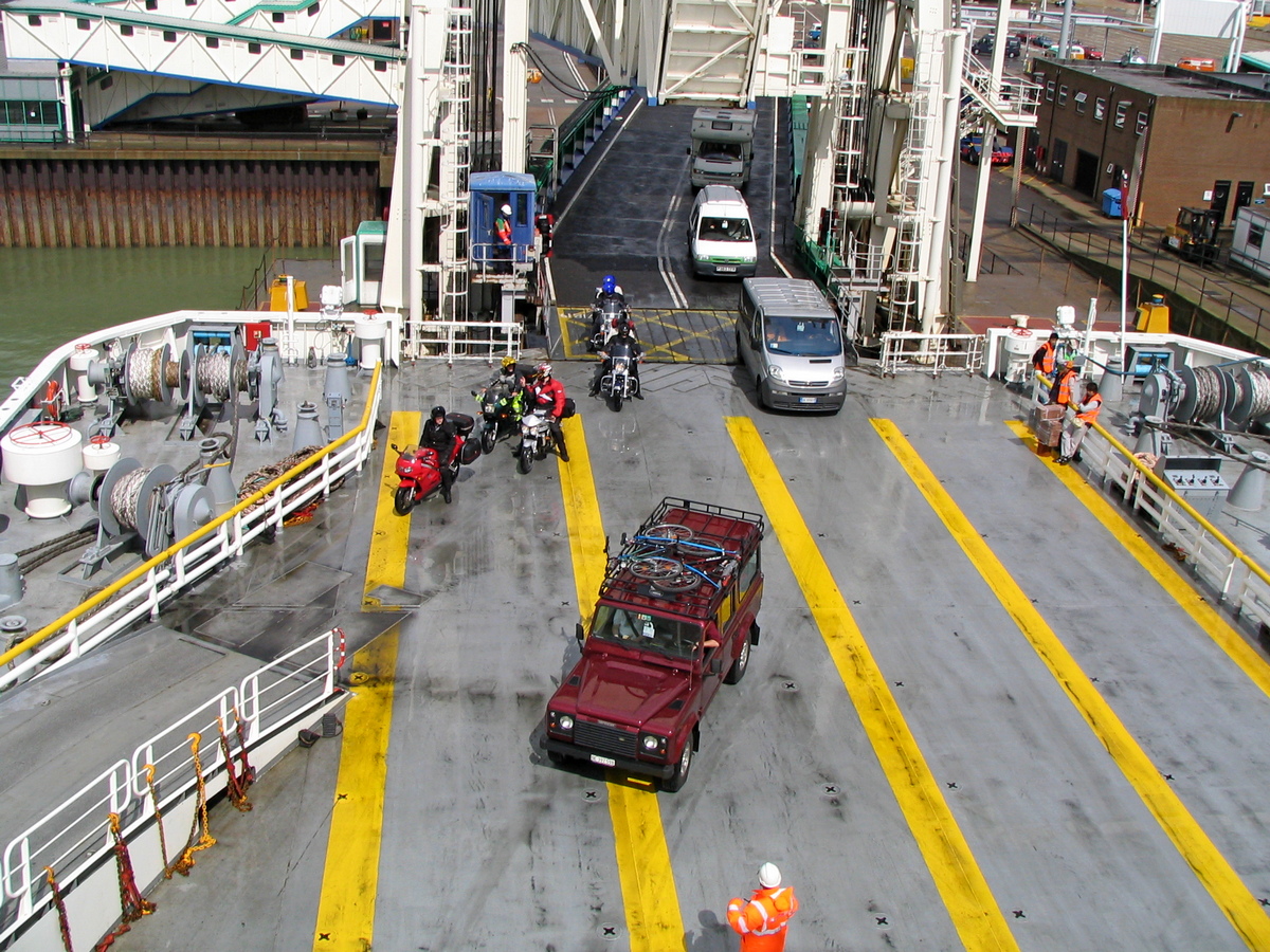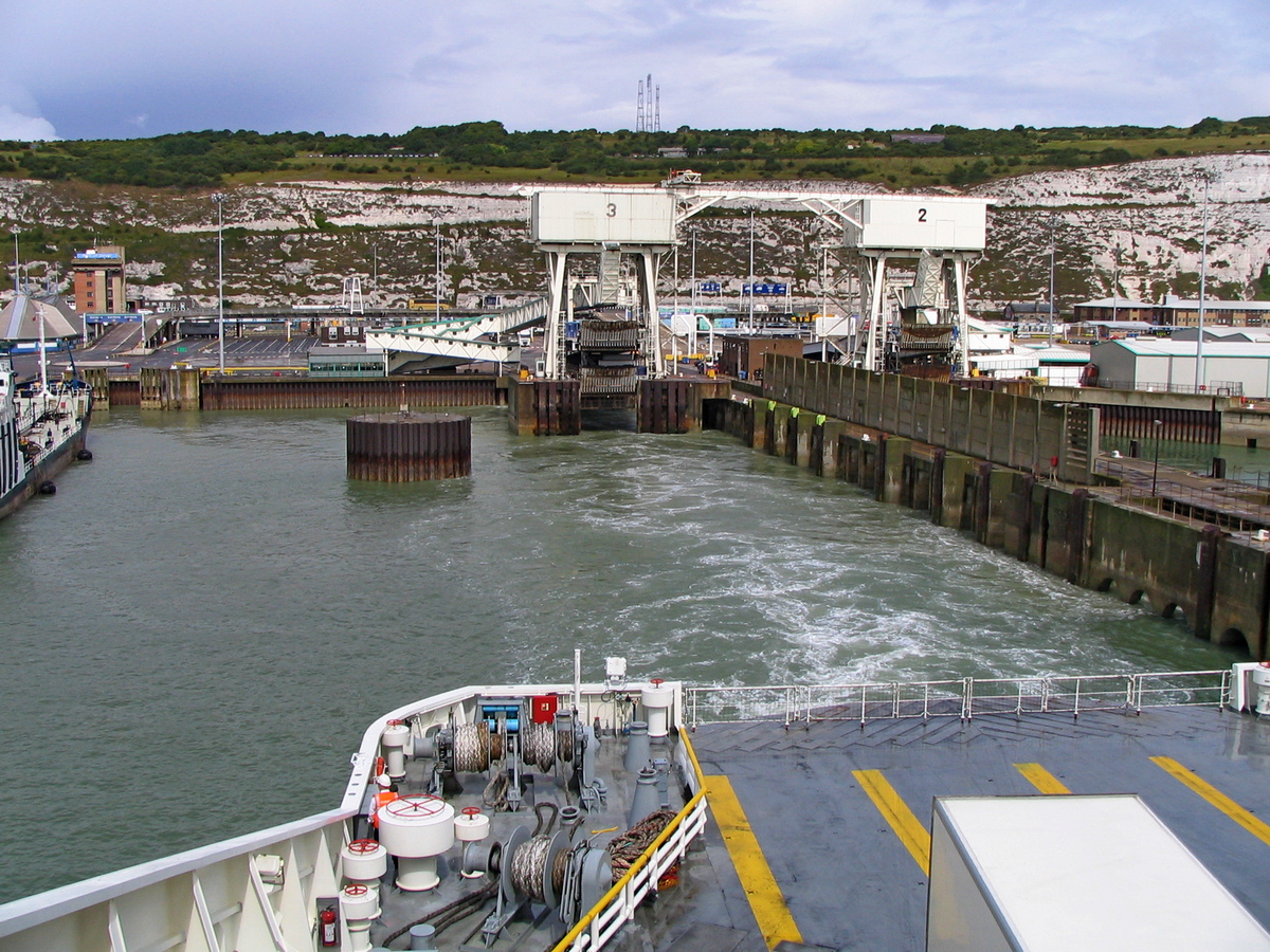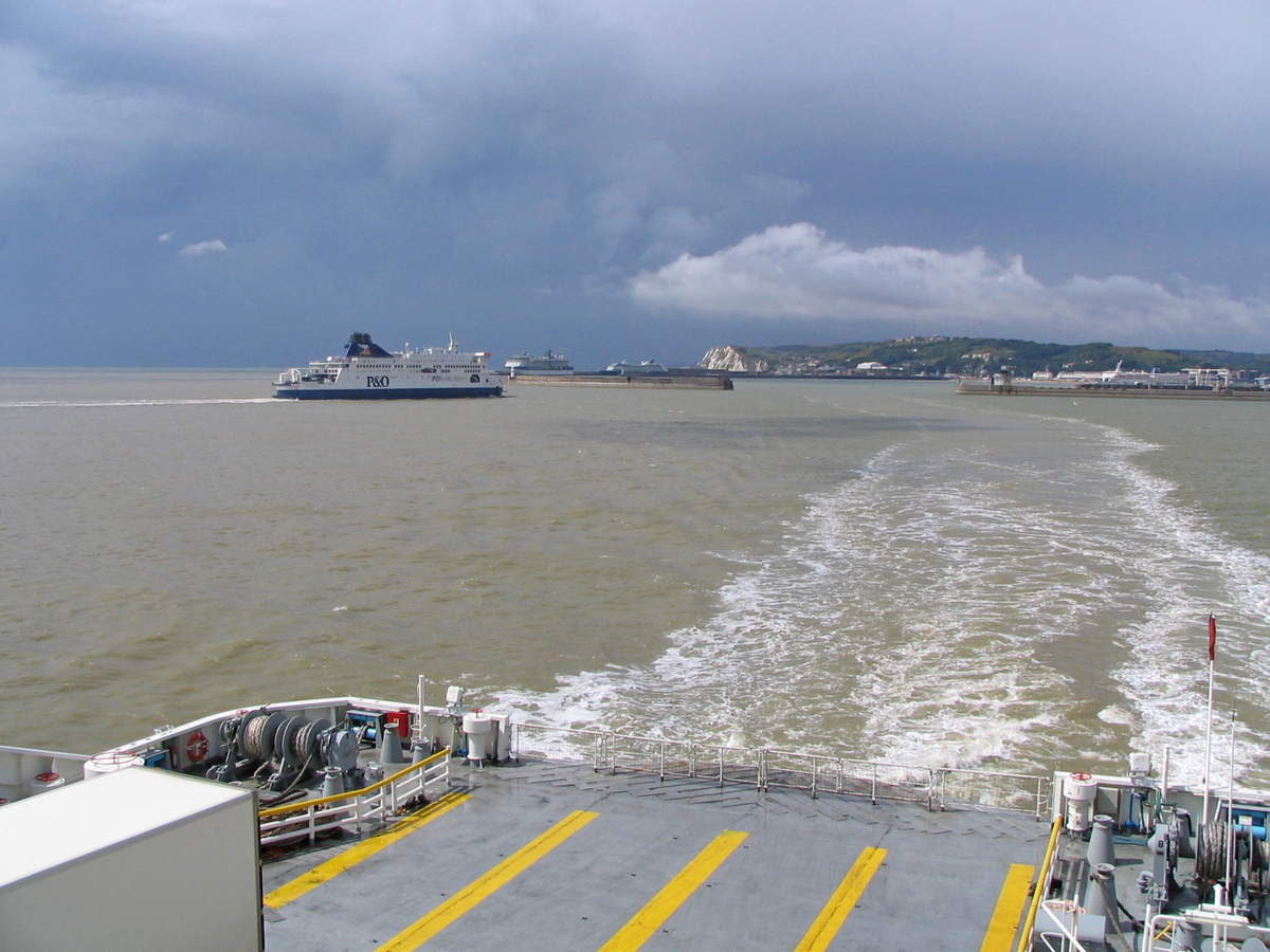 Dover is nog steeds een heel drukke (veer)haven, waar dagelijks duizenden (vracht)auto’s en mensen worden verscheept. Het beladen van de boot verliep op dezelfde efficiënte manier als afgelopen maandag in Duinkerke.
